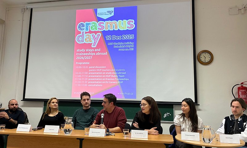 17. 12. 2025 Author: Martina Fantová On Friday, 12 December 2025, the MUP International Office organised the Erasmus Day event to inform interested students about all international opportunities available at MUP.In addition to presentations on Erasmus study stays and traineeships abroad, students learned more about the MUP Buddy Team and EU Careers MUP. The event was opened with a panel discussion featuring MUP academics and students, who shared their Erasmus experiences. Many thanks to everyone who joined us!