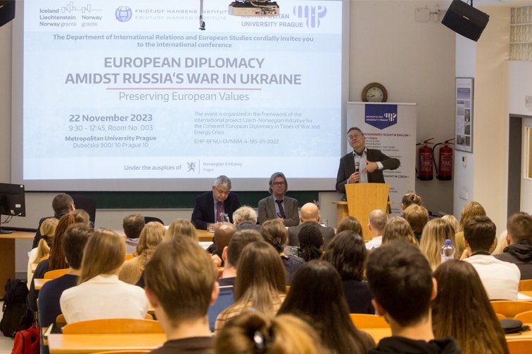 Author: Martin Zubko Metropolitan University Prague hosted an international conference as part of a research project funded by Norway Grants titled ‘European Diplomacy Amidst Russia’s War in Ukraine - Preserving European Values’. This conference was convened with the foremost objective of accentuating the central role of European diplomacy amid the ongoing conflict in Ukraine. The overarching theme of the event revolved around the external coherence of EU diplomacy, with a focus on using EU values and energy policies to assess its effectiveness and implementation.Furthermore, it delved into the intricate questions posed by the ever-shifting geopolitical dynamics within member states of the European Union, along with the far-reaching implications of diplomatic endeavours. This conference not only illuminated the unity of European diplomacy but also grappled with the multifaceted issues arising from the power dynamics among EU member states and their bargaining positions. Moreover, it explored the potential consequences of these diplomatic efforts, particularly considering the European Union’s aspirations to assert itself as a significant actor on the global geopolitical stage.