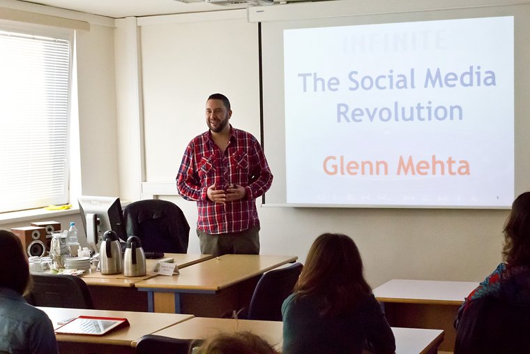 V úterý 10. 3. 2015 se v budově Metropolitní univerzity Praha na Jarově konala odborná diskuse studentů s významným zahraničním hostem z univerzity v Dublinu, Glennem Mehtou.Dr. Mehta studentům představil svoji novu knihu Infinite Ripple – The Social Media Revolution (2013), která pojednává o současných trendech v sociálních médiích a o jejich využití v praxi. Studenti se mohli například dozvědět, jak využít sociální média při úspěšném pohovoru do zaměstnání, či jak se vyhnout nejrafinovanějším kriminálním činům spojeným s novými médii.