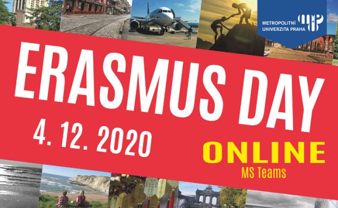 Zahraniční oddělení Metropolitní univerzity Praha pořádá Erasmus Day, který proběhne online – česká přednáška a diskuze od 10:00, anglická od 12:00.Studenti se dozví o možnostech studia a pracovních stáží v zahraničí v rámci Erasmus+ i mimo evropské spolupráce.