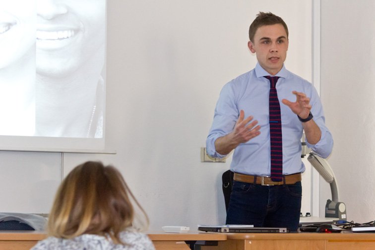 Dne 20. března 2018 se konalo v rámci třetího Career Day setkání našich studentů se zástupcem globální informační a analytické společnosti Nielsen, panem Michalem Elšíkem, senior konzultantem v oblasti marketingové komunikace a výzkumu trhu. Pan Elšík studenty nejprve zaujal vyprávěním o svých zkušenostech z práce na projektech jak v České republice, tak i v zahraničí, zaměřených na problematiku image a reputace značek, významu reklamy, PR a nových technologií v tržním prostředí. Poté obrátil pozornost na trh FMCG (Fast Moving Consumer Goods - rychloobrátkové spotřební zboží), kde od roku 2014 analyzuje trendy ve spotřebním chování a poskytuje poradenství pro lokální i mezinárodní klienty. Studenti se dozvěděli, jak mohou být využita Big Data pro ovlivňování spotřebního chování zákazníků, co je to Retail Audit a jak jsou jeho výsledky využívány v poradenství pro výrobce i maloobchodní distributory, jak se měří Consumer Confidence a Spending Intentions a mnoho dalších zajímavých metod globálně používaných společností Nielsen. Pro zpestření výkladu nechal pan Elšík studenty zasoutěžit v rámci kvízu reflektujícím reálná data a vývoj trhu: jaká je nejprodávanější značka v dané kategorii zboží v České republice, jak úspěšně jsou v Česku prodávány prémiové značky, kolik peněz je za rok investováno do médií, proč nejlevnější cena ne vždy znamená nejvyšší odbyt, jaká je průměrná výše útraty za jeden běžný nákup v českých obchodech nebo které inovace zavedených značek měly největší úspěch na lokálním trhu. Studenti se do soutěže zapojili s chutí a přirozenou zvědavostí. Na konci setkání byla živá diskuse. Studenty výklad velice zaujal a někteří z nich projevili zájem v oblasti výzkumu trhu v budoucnu pracovat.