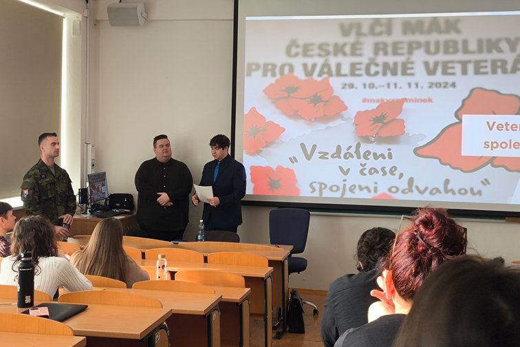 12. 11. 2025 Autor: Oldřich Bureš Praporčík Michal Novotný, veterán zahraničních misí v Afghánistánu a bývalý příslušník 43. výsadkového praporu v Chrudimi, se setkal se studenty Metropolitní univerzity Praha při besedě zaměřené na roli Armády České republiky v mezinárodních operacích, zkušenosti z misí a podporu válečných veteránů.Diskuse se věnovala zahraničním misím Armády ČR od roku 1993, spolupráci v rámci NATO, životu vojáků v zahraničí a činnosti Agentury pro podporu válečných veteránů, která se dlouhodobě podílí na aktivitách směřujících k podpoře a připomínce českých veteránů. Připomenuta byla také iniciativa Vlčí máky, jež každoročně symbolicky uctívá Den válečných veteránů (11. listopadu).