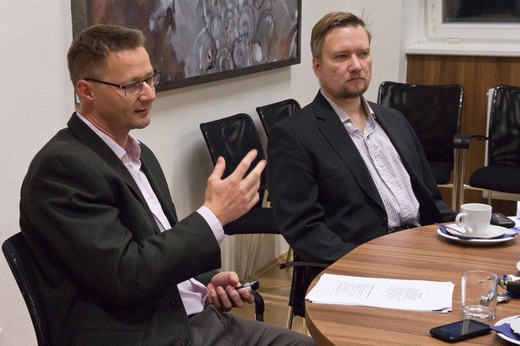 9. 11. 2015 Autor: Oldřich bureš Centrum bezpečnostních studií MUP uspořádalo 21. 10. 2015 křest dvou knih na téma privatizace bezpečnosti, které jsou publikačními výstupy z grantu GAČR č. P408/11/0395 Privatizace bezpečnosti: Role aktérů privátního sektoru v reakcích na současné bezpečnostní hrozby.Jedná se o knihu doc. Oldřicha Bureše Private Security Companies: Transforming Politics and Security in the Czech Republic (Palgrave Macmillan 2015) a o knihu dr. Oldřicha Krulíka Obecní policie a privatizace bezpečnosti v evropských zemích (Aleš Čeněk 2015). Oba autoři nejprve představili své monografie a jejich klíčová zjištění. Po vlastním křtu knih následovala živá diskuze s publikem, která se protáhla až do pozdních večerních hodin. Více informací o této a dalších z akcí Centra bezpečnostních studií naleznete rovněž na stránce centra http://www.c4ss.cz.