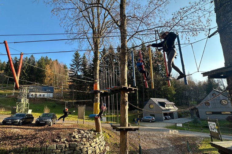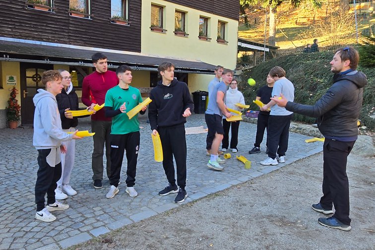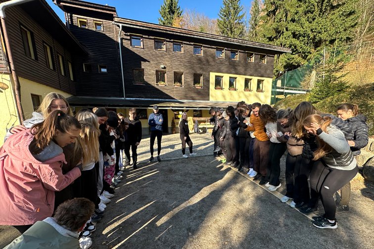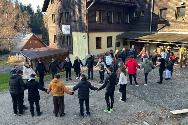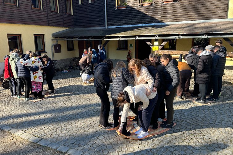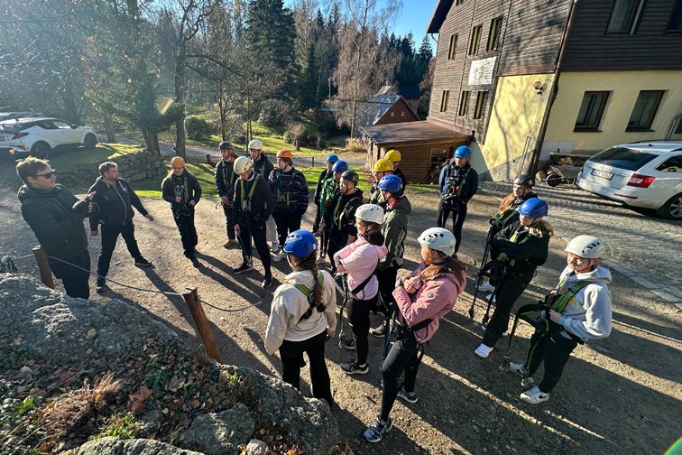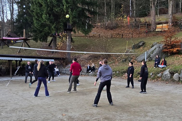 17. 11. 2025 Autor: Milan Šafr Začátek listopadu patří již neodmyslitelně MUPácké seznamovací akci, která, což nás organizátory moc těší, láká stále více studentů naší univerzity. V penzionu Artur, který se nachází v srdci Jizerských hor nedaleko Bedřichova a Janova nad Nisou, již několik let nacházíme vše, co je pro akci tohoto typu potřebné – odpovídající ubytovací kapacitu, sportovní zázemí, ale hlavně nerušené soukromí, které studenty nijak neomezuje, jak ve sportovně-sociálním programu přes den, tak i při večerní/noční zábavě.Téměř 60 studentů prvních ročníků ze všech oborů si vyzkoušelo teambuildingové seznamovací hry, výlet na koloběžkách, zdolávání výškových překážek v lanovém parku, skákací boty, střelbu ze vzduchovky nebo luku. A protože letošní skupina byla velmi aktivní, studenti si sami ve volných chvílích zorganizovali volejbal.
