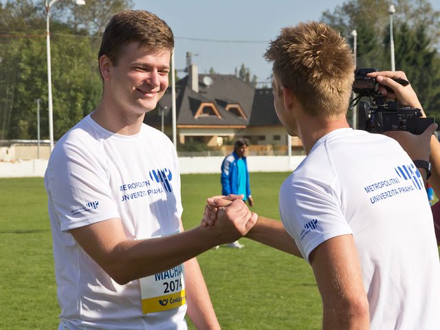 1. 10. 2014 6:45 Autor: Petr Exnar Naše týmy běžců a handicapovaných sportovců Metropolitní univerzity Praha se již po druhé zúčastnily nejstaršího běžeckého silničního závodu v Evropě. Svou účastí jsme se rozhodně neztratili, ba dokonce si troufám říci, že náš tým patřil svou velikostí k největším. Slavnou Duklu Praha reprezentovalo 10 sportovců. Nás bylo dohromady 19! Samotný běžecký závod letos dle oficiálních výsledků doběhlo 2156 běžců.Vzhledem k tomu, že se jedná o otevřené mistrovství České republiky v silničním běhu mužů, žen, juniorů a juniorek, tak se my všichni zúčastnění můžeme neskromně považovat za horní z deseti miliónů, ale o to u nás samozřejmě nejde. Jde tu o filozofii Metropolitní univerzity Praha, jako školy bez bariér, o propojení studentů, učitelů a handicapovaných sportovců. O společnou týmovou myšlenku, o vyjádření úcty k tradici a o boj náš běžců, kdy sami se sebou zodpovědně bojujeme ve snaze dosáhnout co nejlepšího času. Velký dík za podporu patří organizátorovi akce a vedoucímu Centra sportu Metropolitní univerzity Milanu Šafrovi, který z nás dokázal svým zaujetím dostat nejen úsměv na skupinové fotografii, kdy jsme vzdorovali slunečním paprskům.