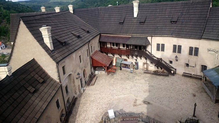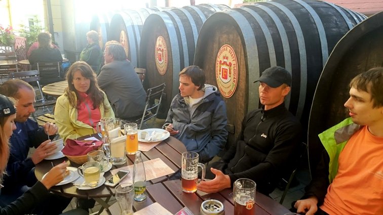 Po utáboření se přesouváme ke stánku k zaslouženému odpočinku. Kemp se vyznačuje příjemnou a klidnou polohou s výborným studeným pivem. Po krátkém oddechu vyrážíme prozkoumat centrum města a okolí hradu. Cesta utíká rychle, brzy vcházíme do centra, které si mimo jiné vybral i hollywoodský štáb pro záběry jedné z bondovek. Záhy se rozdělujeme na dvě skupiny. Tenisoví maniaci vs. milovníci historie. Fanoušci tenisu se vydávají do „vyvoněné“ restaurace u Karla IV., kde sledují vrcholící daviscupovou bitvu. Historici dávají přednost prohlídce starobylého hradu pod dohledem zkušeného průvodce. Ten nás svým osobitým způsobem výkladu několikrát přivede do rozpaků a rozesměje, takže odcházíme navýsost spokojeni. Zbývá vyzvednout tenisty a najít něco kultivovaného pro páteční večeři. Na rozdíl od Sokolova nehledáme dlouho. Pivovar Ferdinand, který je součástí stejnojmenného hotelu, nás ohromí lahodným pivem i kuchyní, ale hlavně přístupem k zákazníkovi. Po naší reklamaci prošlého chleba obdržíme od číšníka 9 medovin, což je na české hostinské poměry opravdu nevídané :-). Ještě přitom stihneme u vedlejšího stolu pozdravit slavici Dagmar Peckovou a poděkovat jí za práci. Za chvilku už z nedalekého amfiteátru znějí první tóny operních árií v podání této umělkyně. Zaplatíme, přicházíme blíže, zjišťujeme cenu lístků (byla vyšší než rozpočet na ubytování a půjčovné vybavení pro celou akci), vracíme se zpět do kempu.